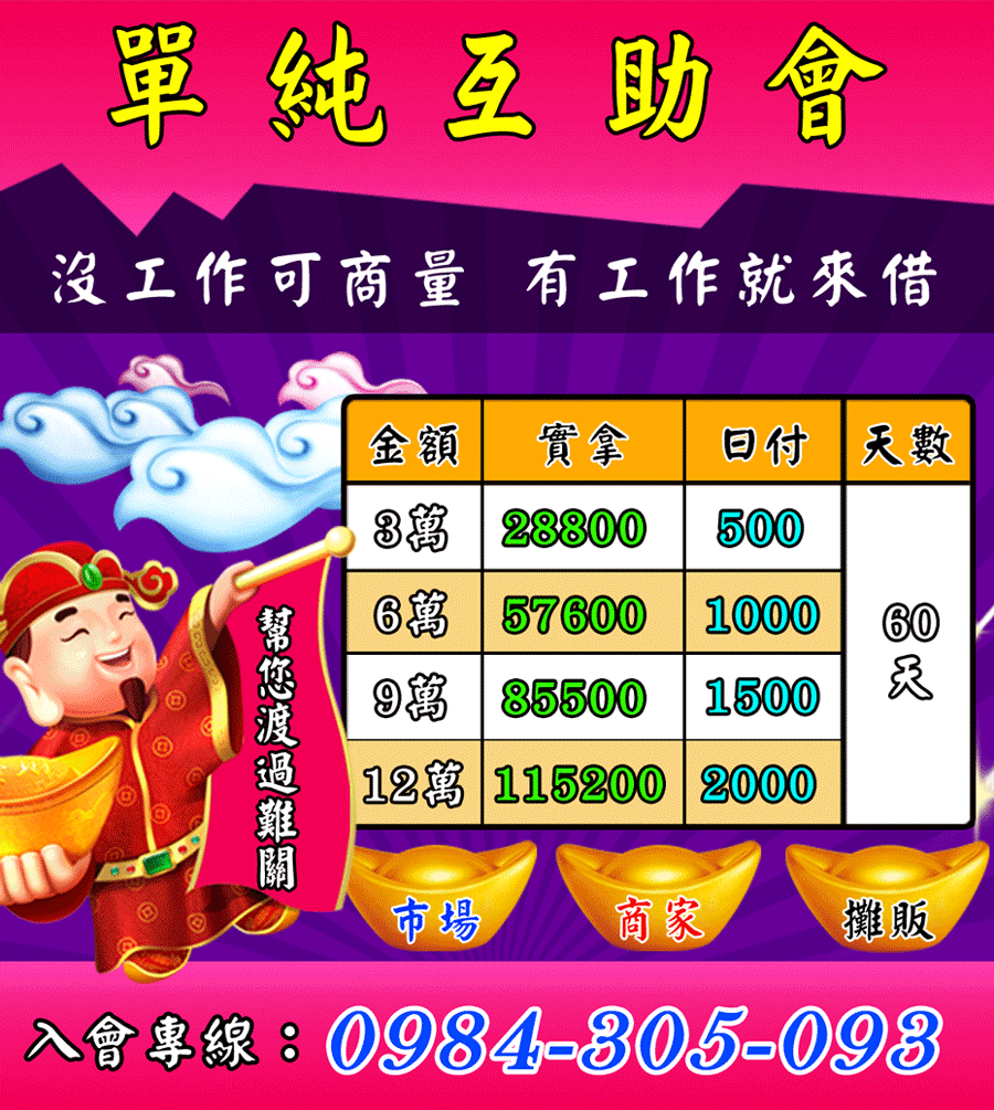 本互助會提供各式高雄小額借款,高雄小額借錢,高雄小額借貸,高雄證件借款,證件借錢等借貸項目,一通電話馬上處理快速核貸馬上讓您提現金走,高雄借錢借款找本互助會不必看人臉色,最佳的救急預備金,別讓一時的手頭不方便,毀了您一生的信用,隨時可借隨時可還,超低利息,超高額度,是您輕鬆救急最好幫手。